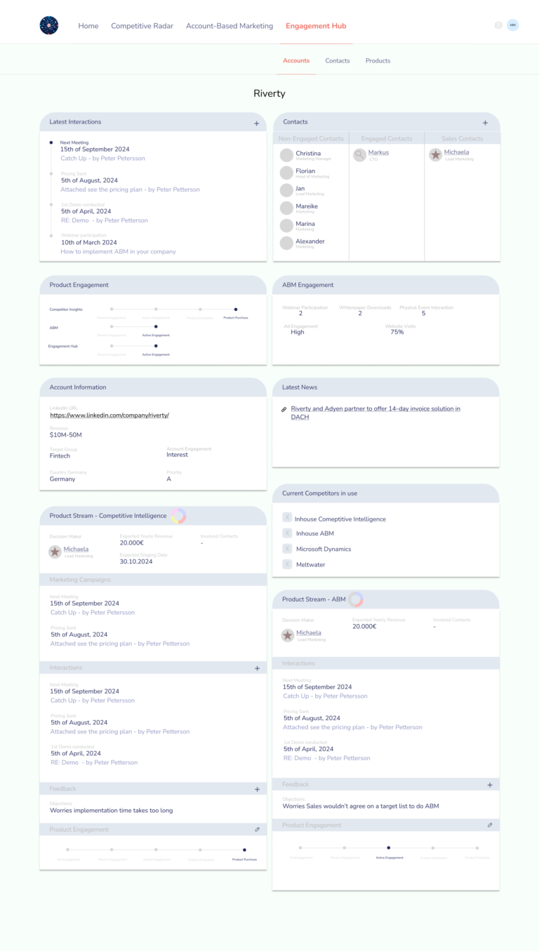 It blends competitive intelligence, account-level insights, and multi-channel engagement data into a shared workspace, which is particularly useful for GTM teams that need alignment across marketing, sales, and leadership.